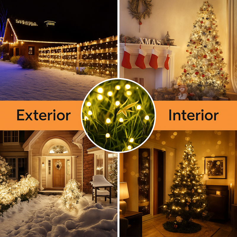 Ilumina tu hogar sin enchufes. Elige Amarillo Cálido para un ambiente elegante o Multicolor para vibras festivas. Encendido automático al anochecer, múltiples modos (fijo y parpadeos) y diseño flexible para terrazas, árboles, rejas y fachadas.